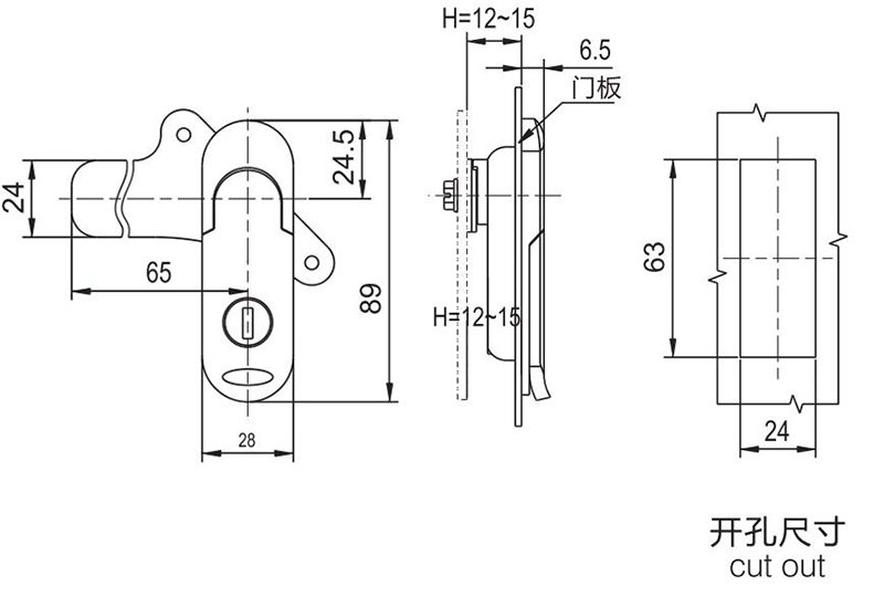 结构说明: 拉出手柄旋转90°实现开启或锁闭