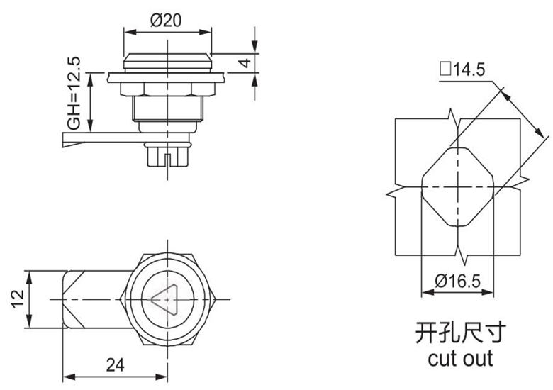 材料:锌合金锁壳和锁芯,碳钢钢栓和螺母