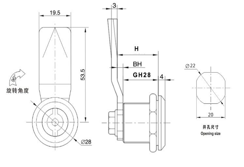 材料:锌合金锁壳和锁芯,碳钢钢栓和螺母