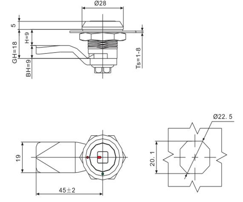 材料:锌合金锁壳和锁芯,碳钢钢栓和螺母
