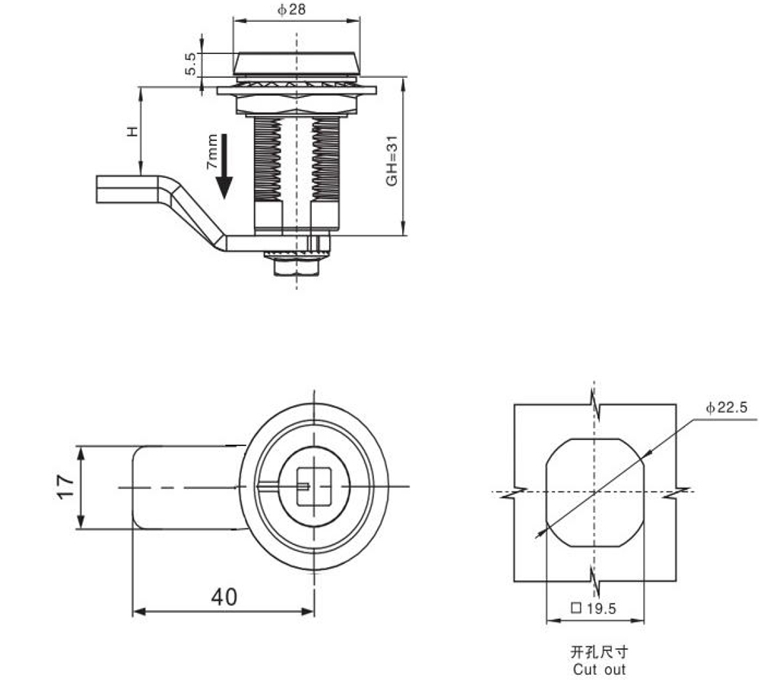 结构说明:旋转210°开启或锁闭