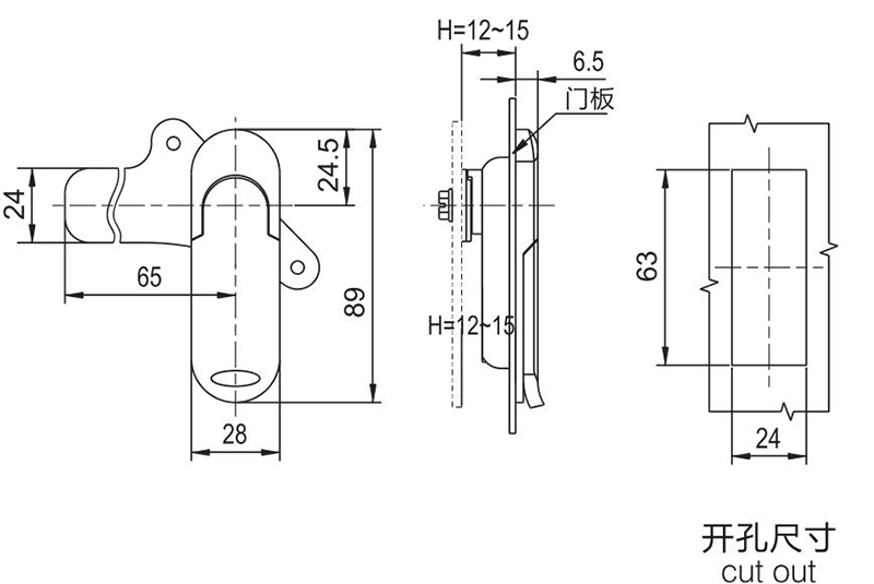 结构说明: 拉出手柄旋转90°实现开启或锁闭