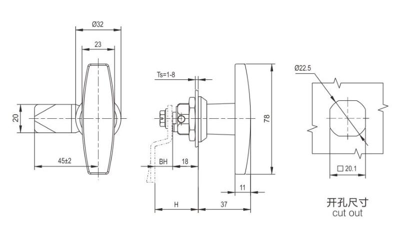结构说明:旋转90°开启或锁闭