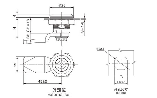 结构说明:旋转90°开启或锁闭